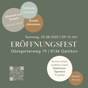 Am kommenden Samstag, 23. August 2025 findet von 09.00 – 12.00 Uhr ein Eröffnungsfest statt. Weitere Informationen gibts auf der Website https://www.bake-house.ch/